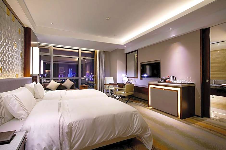 This twin room has a electric kettle, hot tub and mini-bar.
